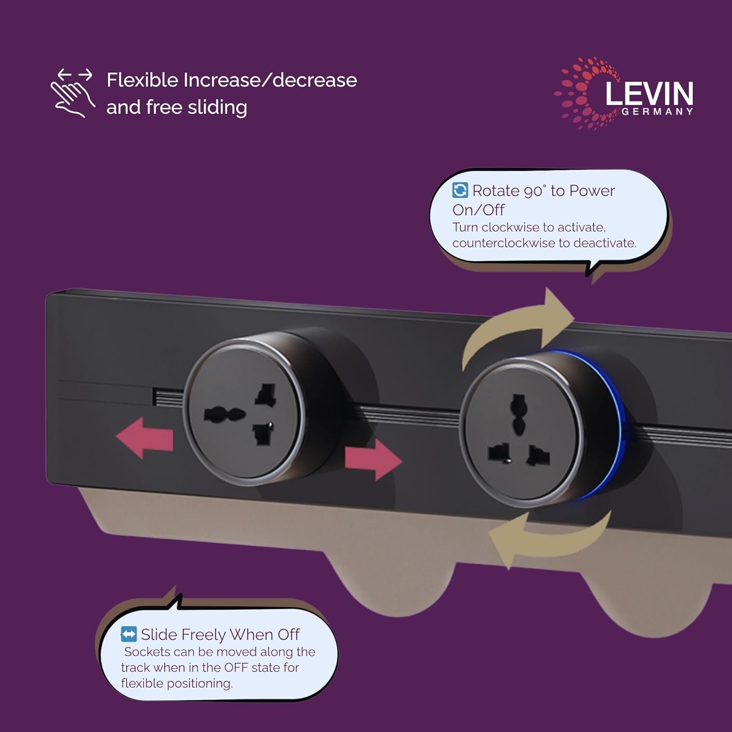 Levin Germany 50cm Power Track | 2 Universal Sockets + USB-A & USB-C | 8000W Rail